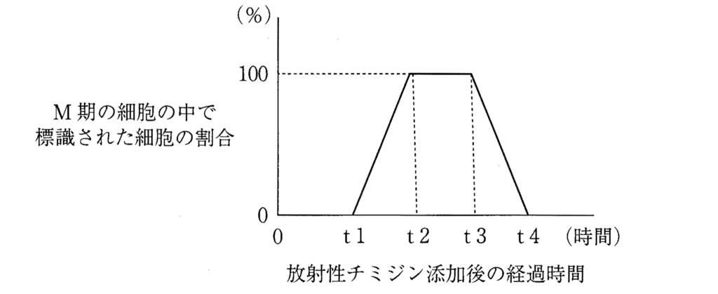 いわゆる “標識されたM期細胞割合の時間変化” から、G1・S・G2・Mを逆算する問題です。