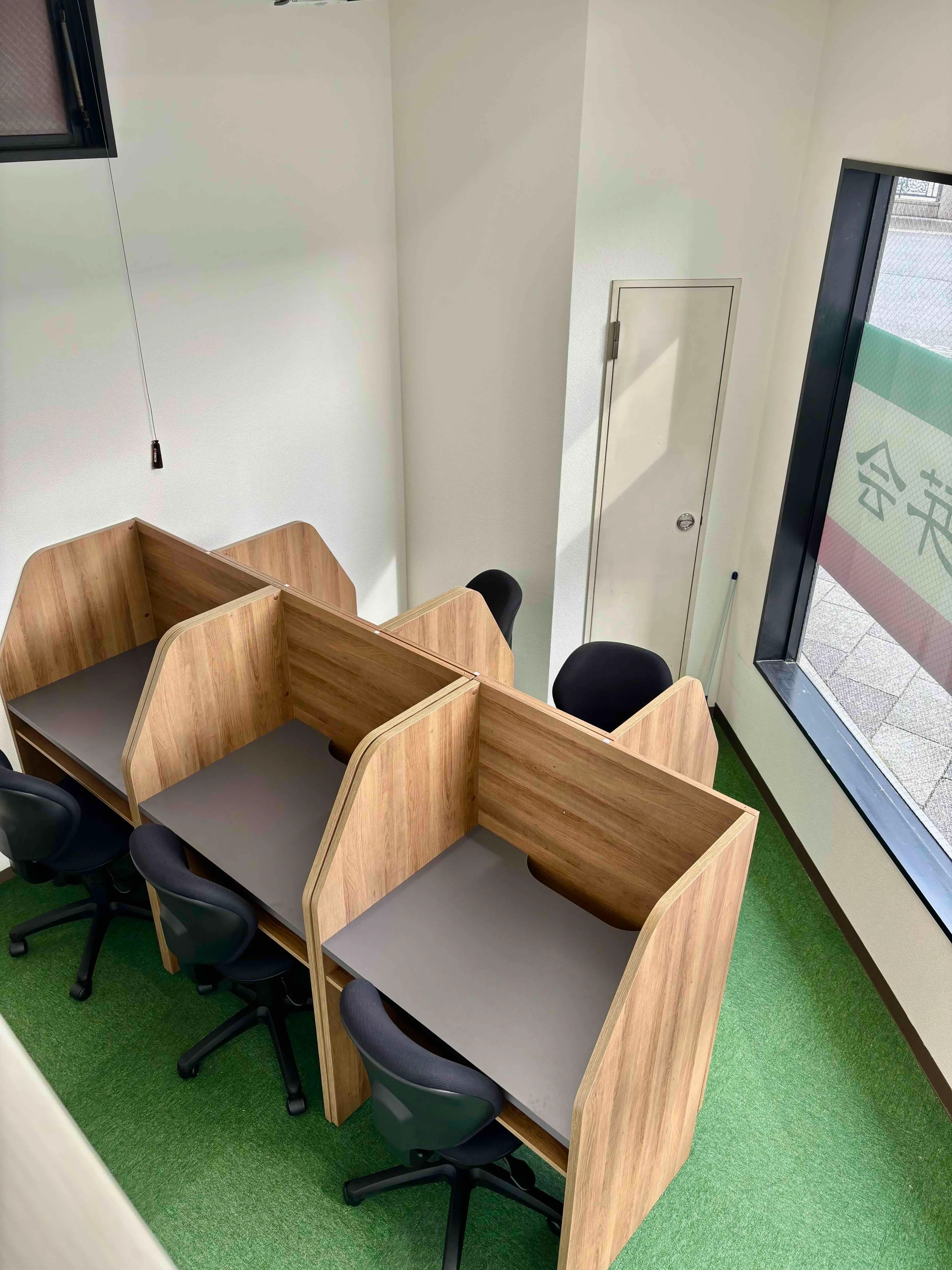 - 生徒1人につき一つの専用個別自習机が割り当てられます。普段使いの参考書や問題集は置きっぱなしでも問題ありません。